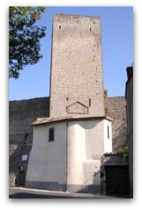 Più avanti, ma sul lato opposto, spicca in tutta la sua maestosa altezza la Torre di Messer Braimando , l’unica superstite (44) delle tante che esistevano sul colle e che furono in gran parte distrutte dalla fazione guelfa nel 1243 in quanto presidio dei partigiani dell’imperatore Federico II.