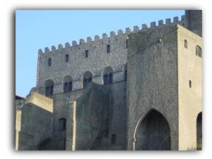 CURIOSITA’: Nell’autunno del 1243 i guelfi viterbesi si rivoltarono contro il podestà Simone di Chieti imposto da Federico II di Svevia. Comandati dal cardinale Raniero Capocci, gli insorti aggredirono la guarnigione imperiale di stanza in città costringendola ad arroccarsi sul colle del Duomo, baluardo delle principali famiglie ghibelline. Fu in quell’occasione che vennero abbattute le torri e i bastioni sfruttati come difesa dagli assediati. La notizia della sommossa raggiunse Federico II, stanziato a Melfi, il quale radunò l’esercito per correre in soccorso dei suoi uomini. Giunto alle porte di Viterbo, l’imperatore cinse d’assedio la città, ma nonostante l’impiego di potenti macchine da guerra non riuscì a spezzarne le difese. Dopo poco più di un mese di estenuanti scontri e di mediazioni diplomatiche, Federico accettò di ritirarsi in cambio dell’amnistia per i ghibellini viterbesi e del salvacondotto per i soldati ancora asserragliati sul colle.