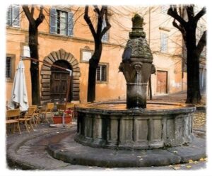 Al centro della piazza fa bella mostra di se la Fonte della Morte