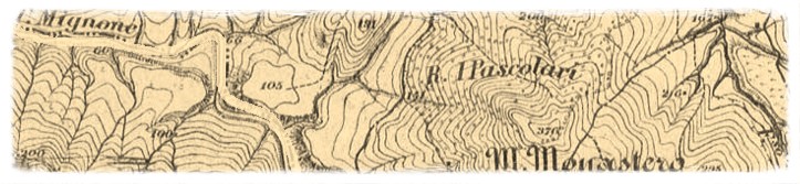 I castelli di Montemonastero e di Sant’Arcangelo, dall’alto della loro posizione a nord est del massiccio tolfetano, erano tra loro in contatto visivo e sorvegliavano il Passo di Viterbo, lo strategico guado del Mignone che metteva in comunicazione l’area romana con quella viterbese e cornetana. Il fortilizio di Montemonastero era situato ad un’altitudine di 401 metri, sulla cima più elevata dell’omonima altura, probabilmente così denominata perché appartenuta, con le sue selve e i pascoli, ad un incognito monastero;[39] forse si trattava del potente cenobio di S. Paolo fuori le mura, proprietario di fondi e castelli ai confini della Tuscia Romana,[40] oppure dell’abbazia di S. Martino al Cimino, che nel 1208 ricevette da papa Innocenzo III la conferma di alcuni possedimenti, tra cui terras quas habetis apud montem Monasterium. Nel XIII secolo è documentata l’esistenza di un consistente insediamento rurale e di tre chiese.[41]
