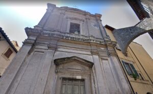 Ed in effetti, l’attuale struttura è frutto di una radicale ristrutturazione operata verso la metà del ‘700 su una preesistente chiesa medievale dal titolo di S. Giovanni in Petra, la cui prima menzione risale al 1190: le sorelle Alfarda, Vivacia, e Altakira vendono a Iohannes Petri coppari una casa situata in parochia Sancti Iohannis in Petra (perg. 2520 Arch. S. Sisto). Da una bolla papale del 1207 sappiamo, inoltre, che S. Giovanni apparteneva alla giurisdizione dell’abbazia cistercense di S. Martino al Cimino, anche se più tardi la ritroviamo tributaria del Capitolo della Cattedrale, obbligo dal quale ottenne l’esenzione grazie ad un decreto di papa Giovanni XXI del gennaio 1277.