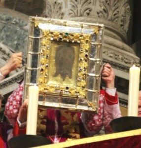 Con il Giubileo del 1300, proclamato da Bonifacio VIII, la Veronica divenne la reliquia più celebre d’Europa. Dante stesso, nella Vita Nova, allude alla moltitudine che si recava a Roma “per vedere quella imagine benedetta”.