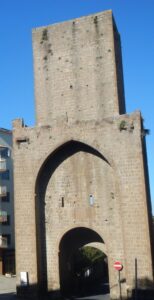Ma è soprattutto nel torrione merlato del lato sud-est che si attinge a piene mani ad elementi medievali, seppure snaturandoli con volumi cubici ed angoli netti. Non può, infatti, negarsi un’assonanza di forme tra la tozza struttura del palazzo dell’Economia (che raggiunge i 38 metri) e la duecentesca torre di S. Biele, entrambe terminanti con un torrino sopraelevato. Anche la grande trifora aperta sul lato meridionale della torre, sormontata da un oculo e compresa in un arcone a tutto sesto, è quasi un accomodamento moderno della loggia del Palazzo Papale o del chiostro di S. Maria in Paradiso.